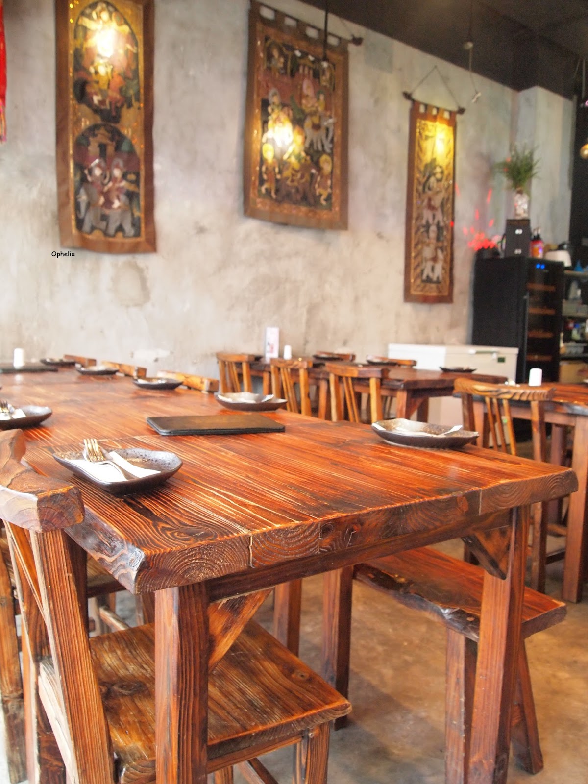 木質的餐桌,有一些泰國的小擺設