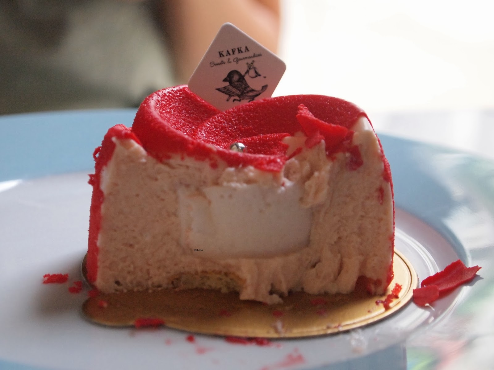 溫和的草莓慕士帶點清新的果酸,中間包裹著香甜的巧克力味,餅底做得乾爽清脆